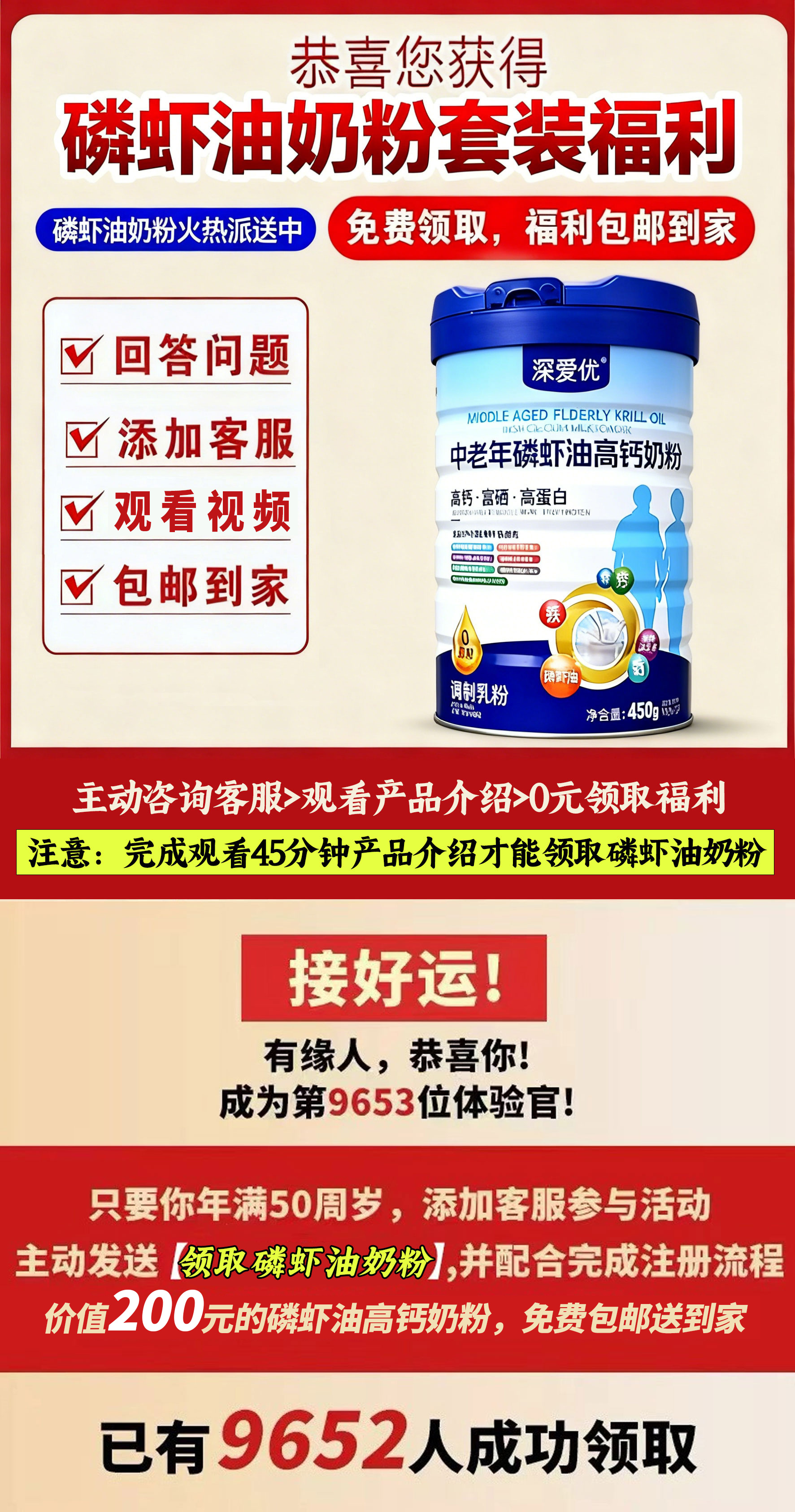 好的,领取磷虾油高钙奶粉!需要配合厂家完成个人信息登记,是否愿意?